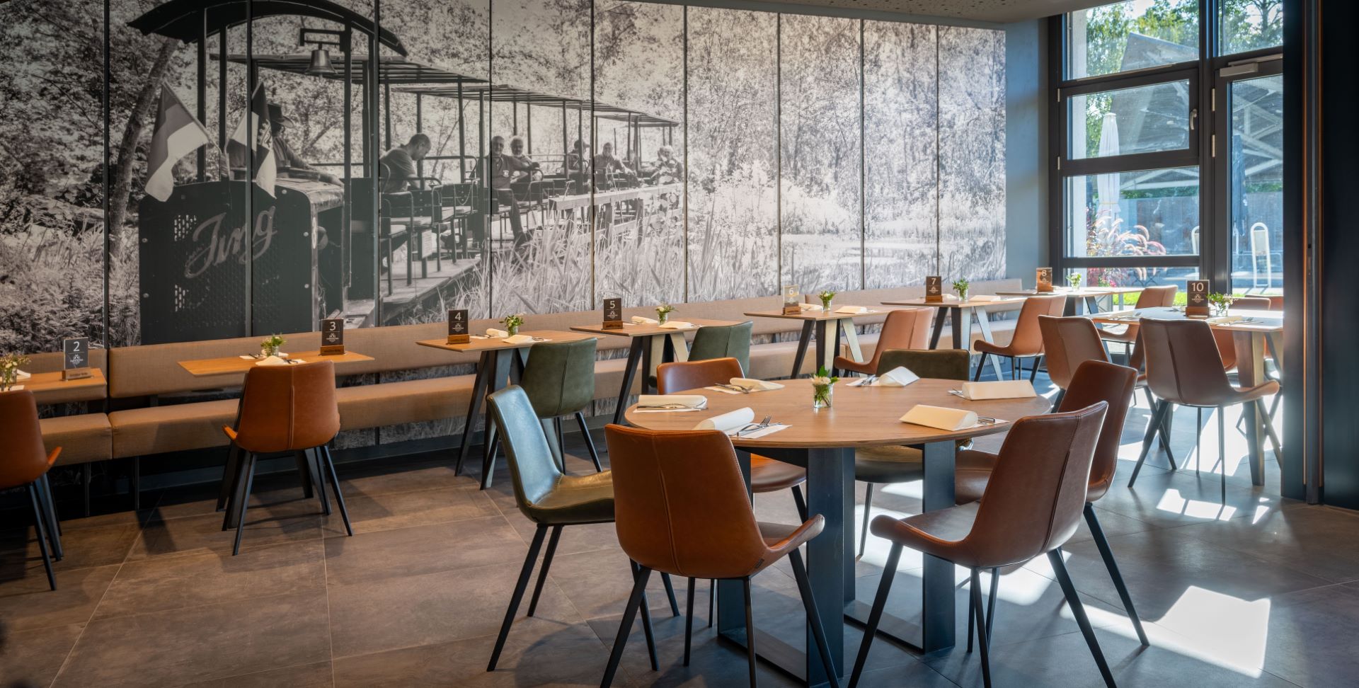 Lass dich von unserem liebevoll gestalteten Gastraum verzaubern. Mit 100 Sitzplätzen bietet der Innenbereich des Torfstechers eine warme und einladende Atmosphäre, die das Thema Torfstich modern interpretiert. Perfekt für ein gemütliches Beisammensein oder ein festliches Dinner.